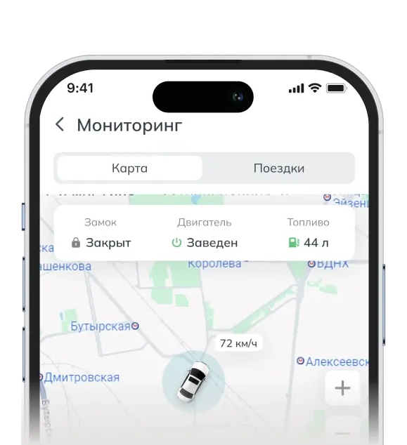 Позволяет отслеживать местоположение автомобиля на карте и сохранять историю поездок для анализа и контроля перемещений.